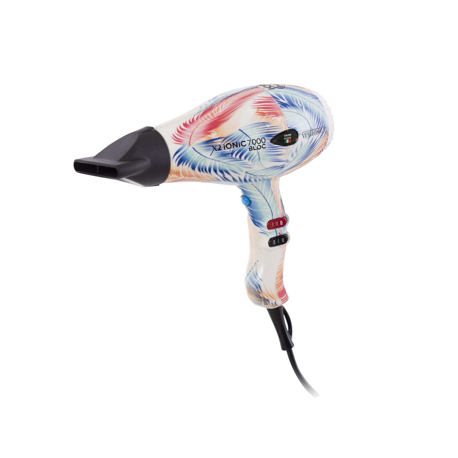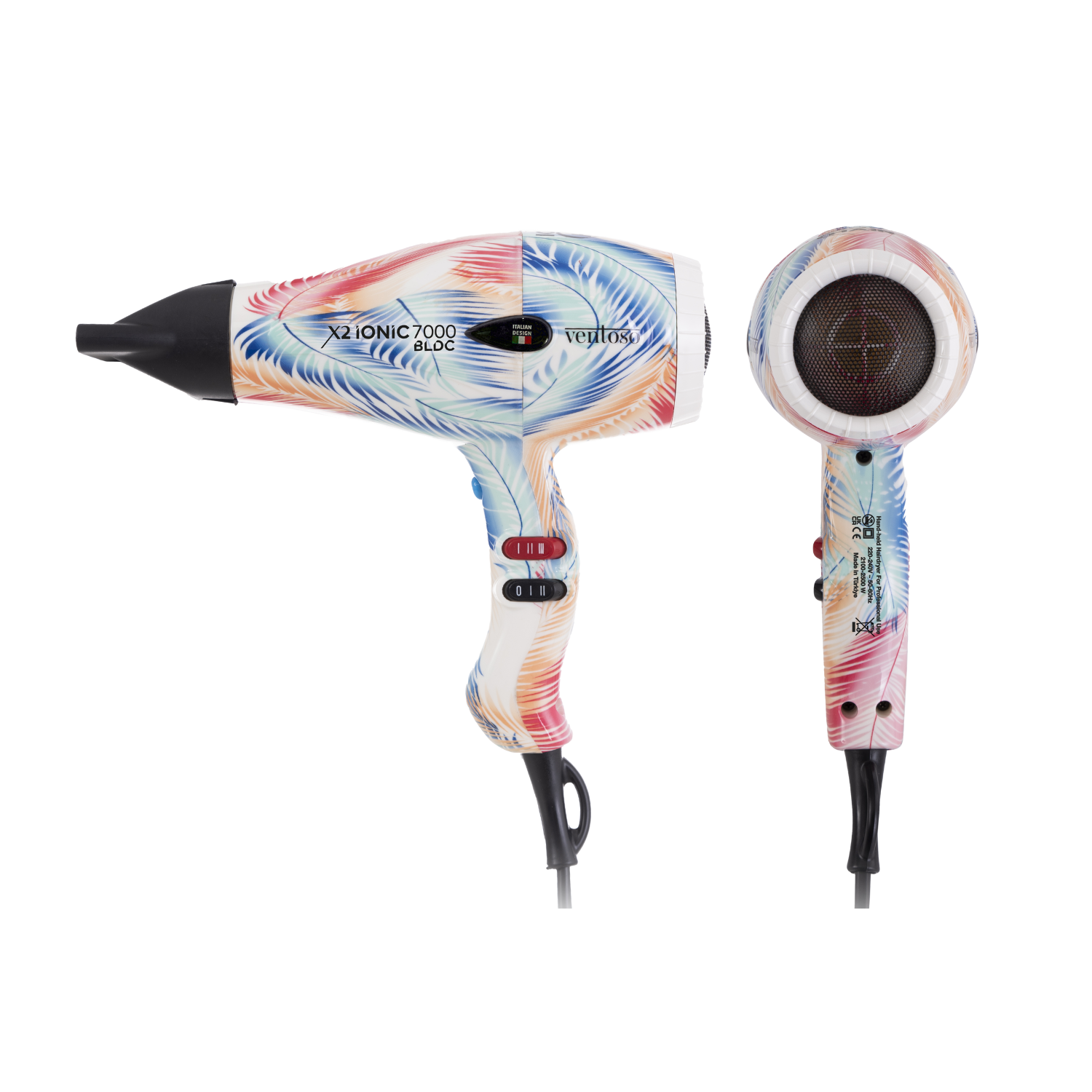 It can be used easily on thin hair by obtaining lower speed and lower heat with its heat settings. VENTOSO X2 IONIC7000 BLDC has special colors on its filter mesh and front grille.