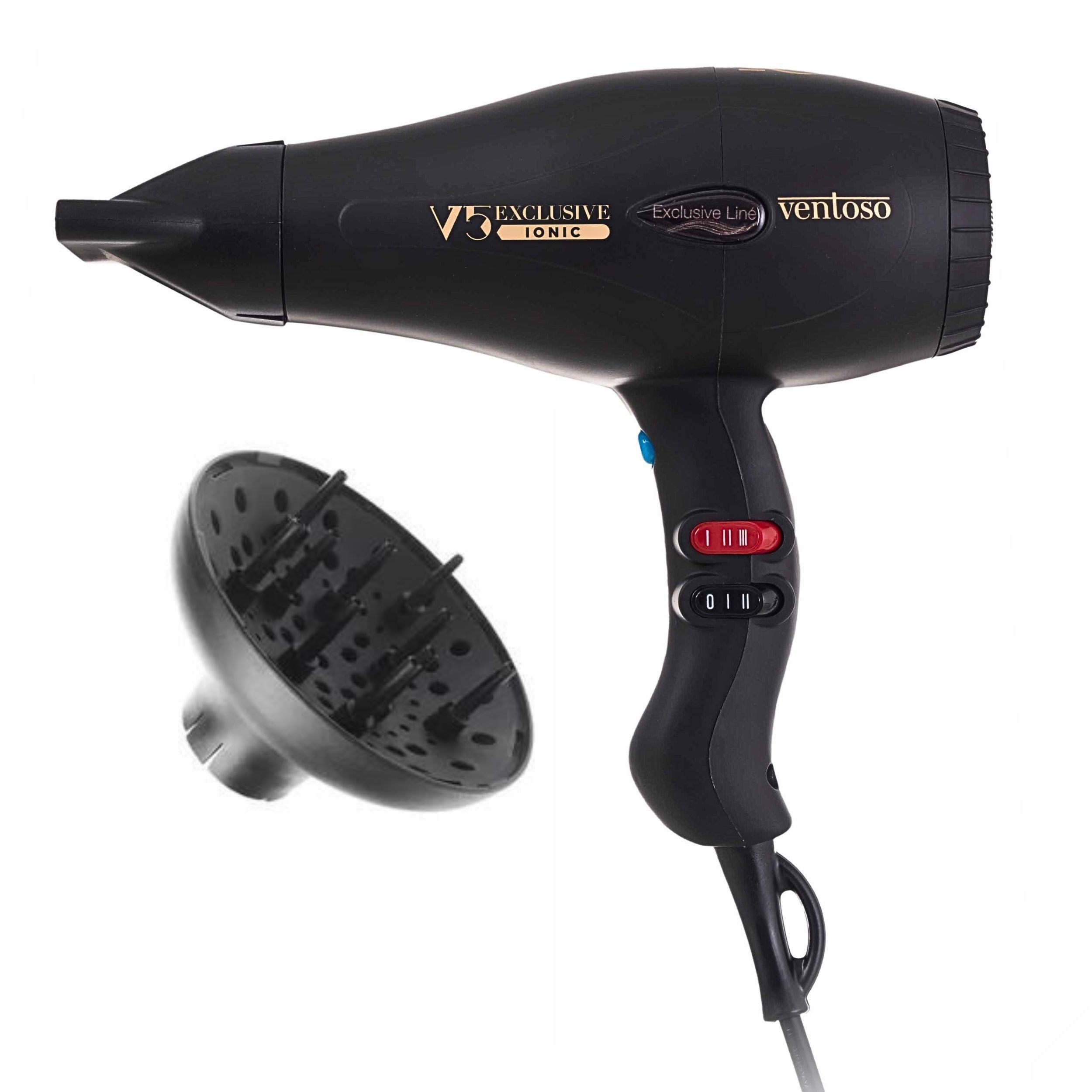 Gli asciugacapelli professionali Ventoso Exclusive Ionic, dotati di una potenza di 2500 W e di un livello di silenziosità di 63 dB, nonché di un generatore di ioni certificato TÜV, creano 20 milioni/cm3 di ioni negativi se applicati a una distanza di 10 cm.