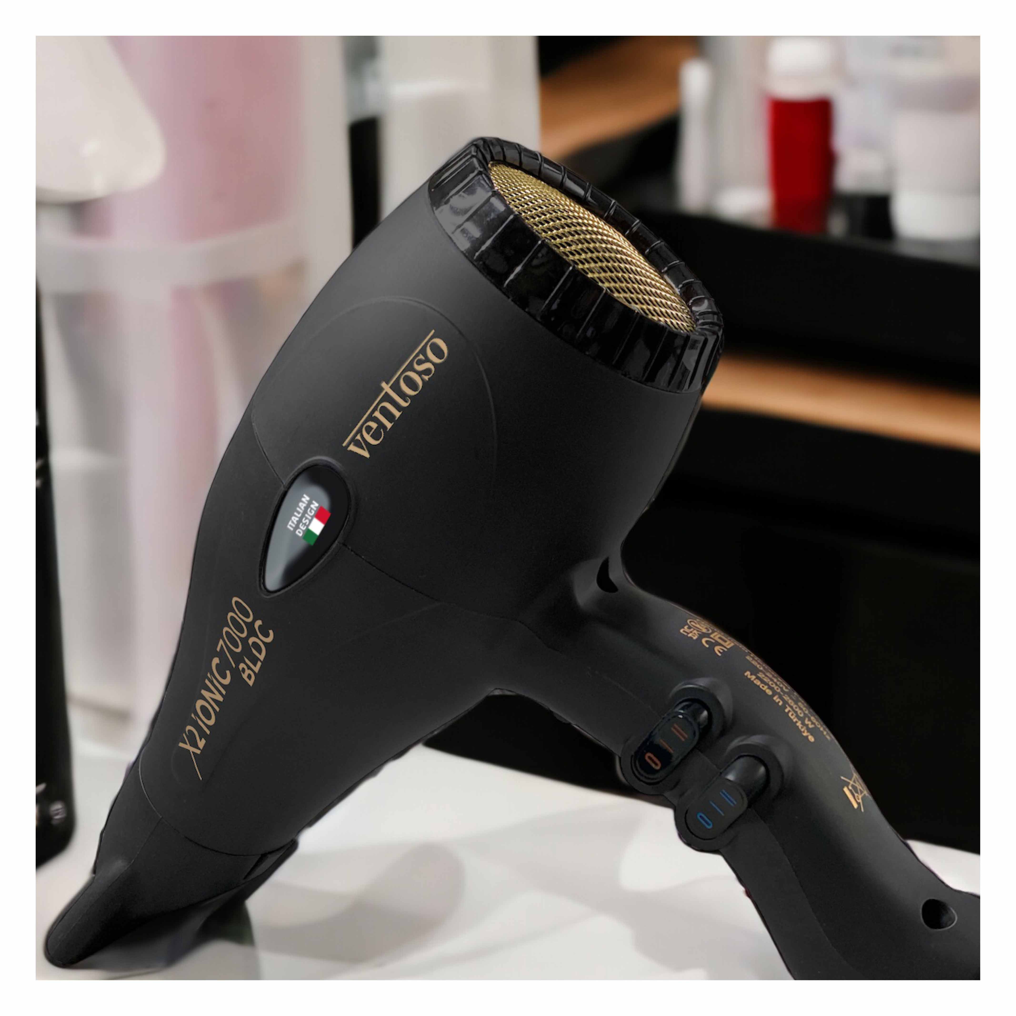 Isı ayarlarıyla daha düşük hız ve daha düşük ısı elde ederek ince telli saçlarda da rahatlıkla kullanılabilen VENTOSO X2 IONIC7000 BLDC, filtre teli ve ön ızgarasında özel renklere sahip.